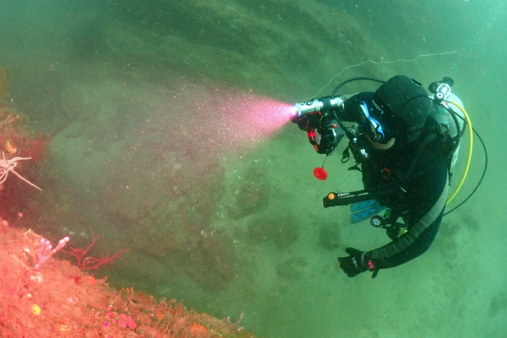 ライトを照らしながら、生物を探してると!