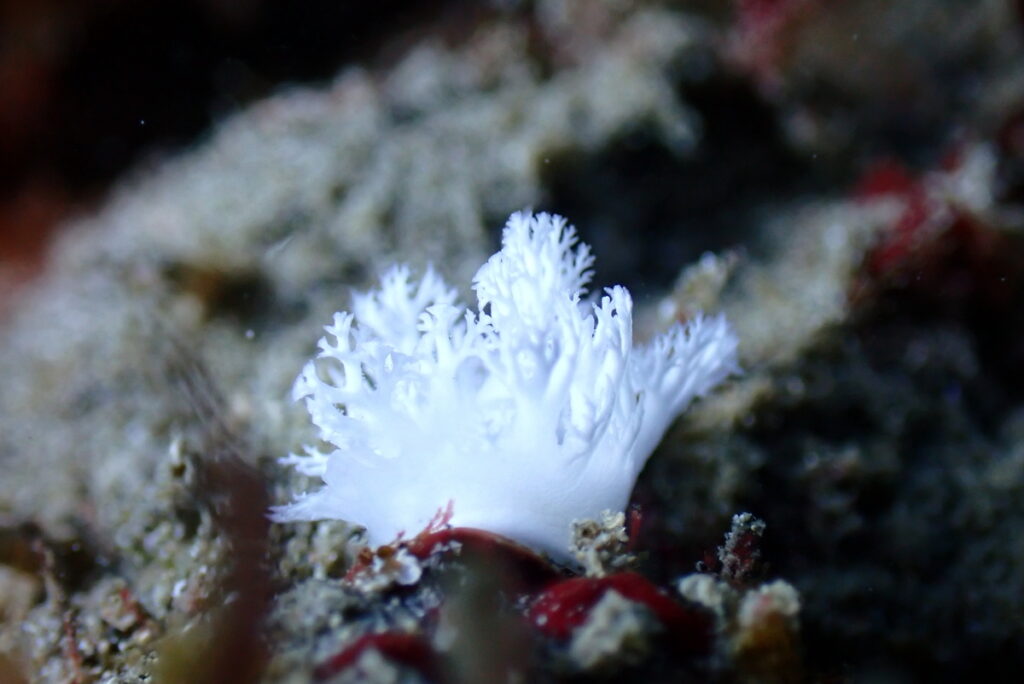 講習の合間には、中性浮力をとりながら生物観察☆(ユビノウハナガサウミウシ)